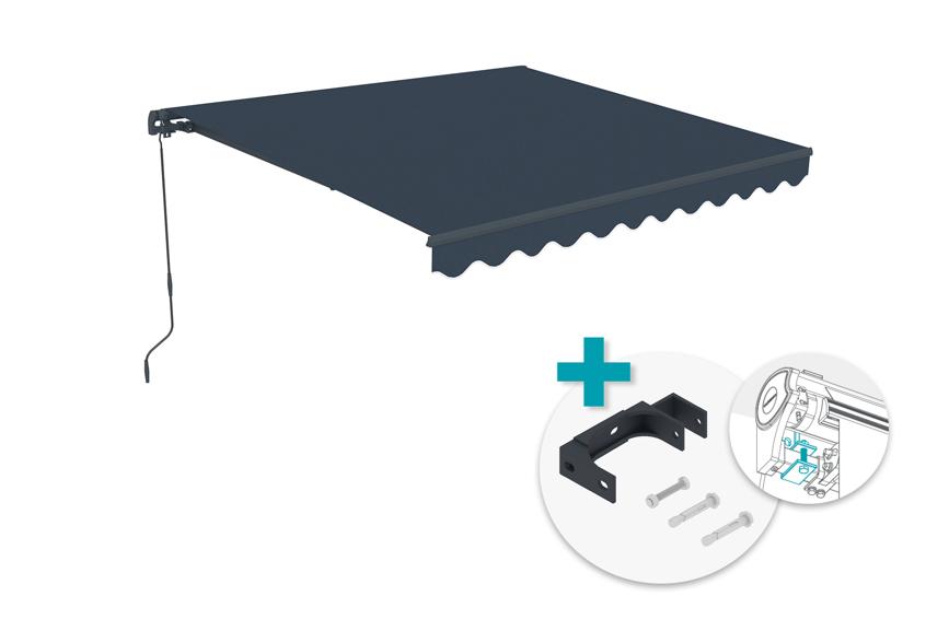Made of powder-coated galvanized steel, it guarantees excellent corrosion resistance and optimal durability against outdoor conditions. Its gray 7016 color perfectly matches awning frames of the same shade, for a harmonious and discreet look.